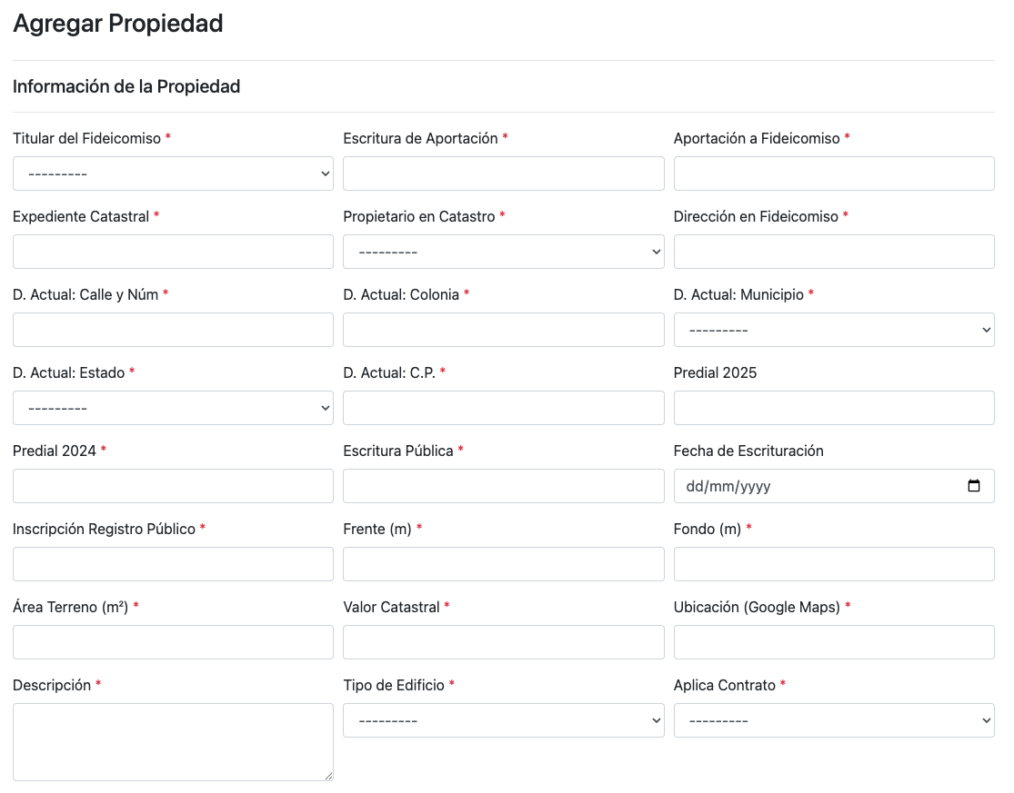 Aquí se muestran los campos a llenar para cada propiedad. Al hacerlo, se crean expedientes con información unificada que vuelven fácil filtrar todo como una base de datos.